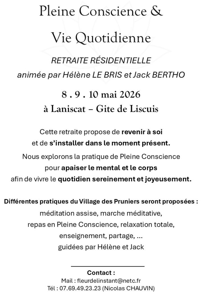 Votre présence est un soutien précieux pour notre sangha et nourrit notre pratique collective.